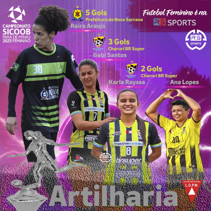 Raira de Nova Serrana tem 5 gols, Em seguida 3 jogadoras do Charuri, Gabi Santos com 3 gols, Karla Rayssa e Ana Lopes, ambas com 2 gols.