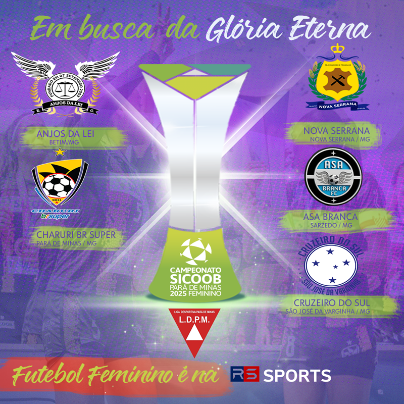 Um sonho: 5 equipes, na busca pela Glória Eterna! O Campeonato Sicoob Feminino 2025, organizado pela Liga Desportiva de Pará de Minas, começou no último final de semana. Dia 7 de dezembro será a grande final.Somente uma equipe irá conquistar a Glória Eterna. Acompanhe a competição do futebol feminino de Pará de Minas aqui na RS SPORTS. O total da competição serão 13 partidas, como foi realizada duas partidas na semana passada, restam 11 partidas da competição. A tabela das partidas.